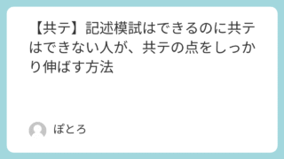 共テ勉強法 【共テ】記述模試はできるのに共テはできない人が、共テの点をしっかり伸ばす方法 こんにちは!現役京大生のぽとろです!今回は記述模試では点が取れるのに共テではなかなか点が伸びないという方に向けて、共テの点数を伸ばす方法について解説していきます!この記事をご覧の方は「記述模試では良い点が取れているのに共テ形式では全然点が取... 2025.07.08 共テ勉強法